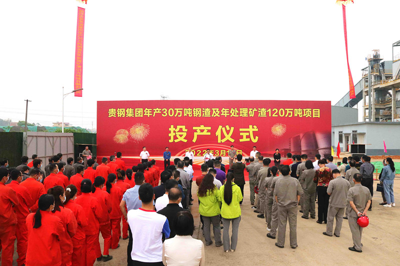 3月16日上午,贵钢集团在粤桂产业园区举行年产30万吨钢渣及年处理矿渣120万吨项目投产仪式。仪式由集团公司总裁、首席执行官黄家永主持。市政府副市长张景联,市委统战部部长、市工商联书记柒展杰,市工信局副局长陈永军,市产业园区管委会副主任温伟雄,港北区副区长林少华,项目设计总包单位、武汉建筑材料工业设计研究院党委书记白宁,集团公司党委书记、董事长蒋耀生,党委副书记、首席运营官蒋新宇,副总裁李杰,董事长助理黄秋荣出席仪式。