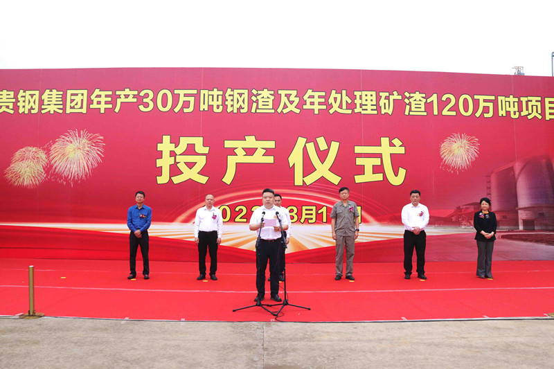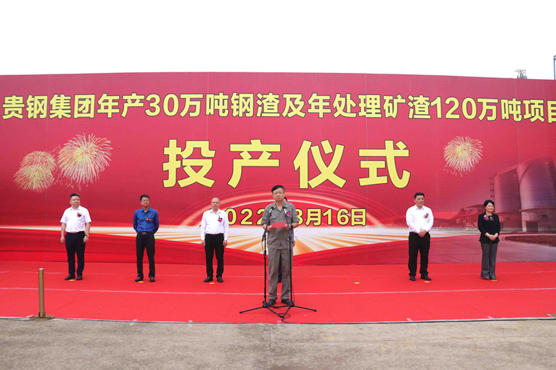 ▲市政府副市长张景联发表热情洋溢的讲话,并宣布贵钢集团年产30万吨钢渣及年处理矿渣120万吨项目正式投产。