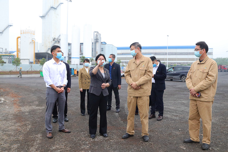 蒋耀生陪同黄英梅一行到亚临界发电项目实地调研,并详细介绍有关项目情况。