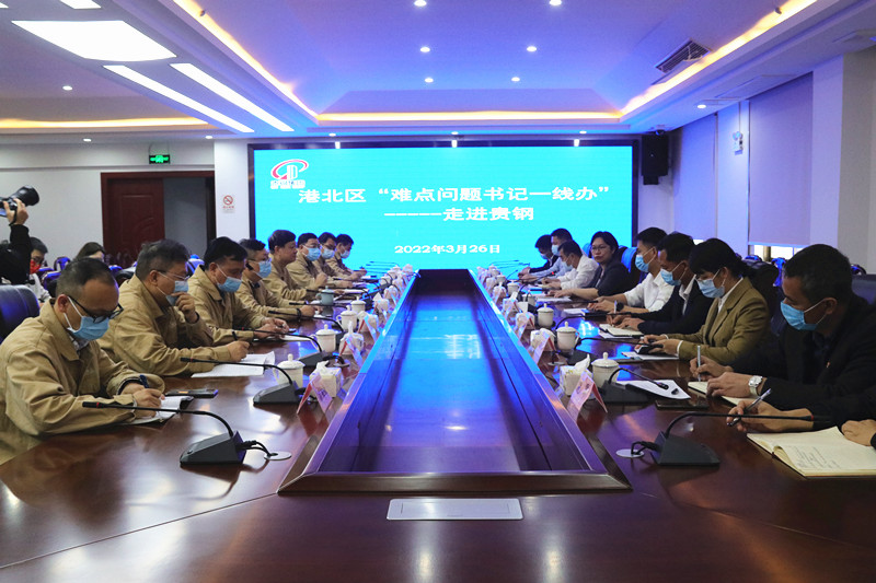 3月26日,港北区委书记黄英梅莅临我公司开展“难点问题书记一线办”活动,现场协调解决制约贵钢在发展和项目建设的过程中遇到的困难和问题。港北区委常委、常务副区长吴展昭,区人大常委会副主任李德科,区政府相关职能部门负责人;集团公司党委书记、董事长蒋耀生,总裁、首席执行官黄家永,党委副书记、首席运营官蒋新宇,党委副书记、副总裁姜兴建等陪同。