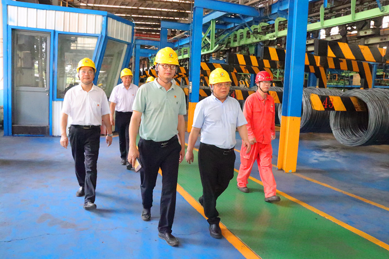 姜兴建陪同李开伟一行先后参观了轧钢生产线、培训中心,并详细了介绍相关生产工艺流程、设备情况。